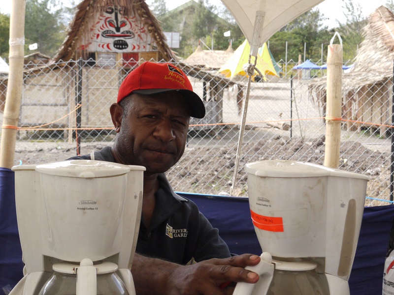 会場でコーヒーを売っていたおじさん。隣では女性が生豆からローストされた豆まで焙煎のプロセスがわかるように豆をお皿に並べていた。残念ながらコーヒーを飲まなかったが、きっと、本格的なコーヒーが飲めるだろう。