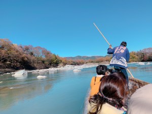 台風19号などの影響で、ハイキングコースがいまでも激しく崩落しており、通行不能でした。左の川岸に散策路があったはずです。