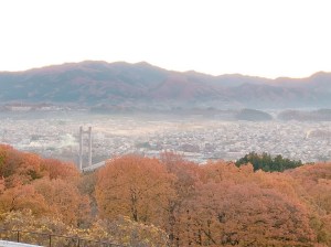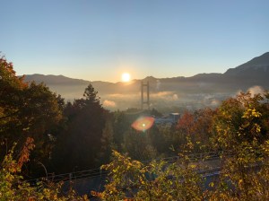 翌朝、雲海を見に、夜明けに合わせ車で「秩父ミューズパーク」へ行きました。あいにく雲海は少ししか出ませんでした。雲海は、盆地に放射冷却の起こった早朝に出やすいそうです。