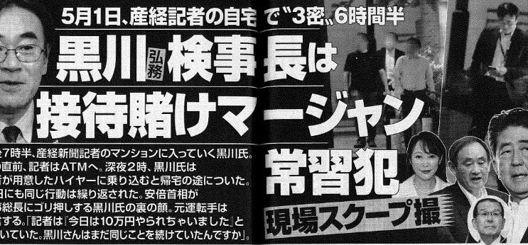 • 5月20日(水)週刊文春デジタル版に黒川検事長の麻雀賭博がすっぱ抜かれる。