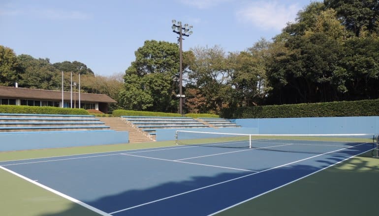 主が所属するテニスクラブは結構規模が大きい方で、テニスコートが約20面あり、そのうちハードコートは4面、残りはオムニコートである。周囲は林に囲まれていて緑も多く、結構恵まれた環境である。