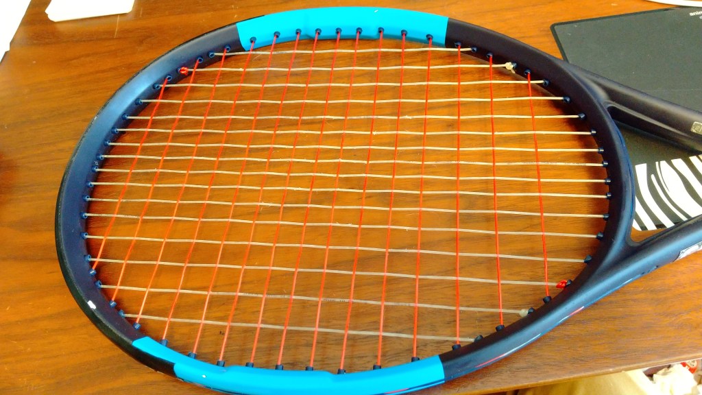 しかし、ふと気が付いたのだが、もし自分でガットを張っている場合や、テニスショップの店員さんと親しいなら、あらかじめナチュラルガットを2本張りしておき、傷んだ(あるいは切れた)クロスガットのみを張り替える方法もあると思える。ナチュラルガットは切れるまで使えると言われるから。・・・・まあ、そのうち試してみよう。