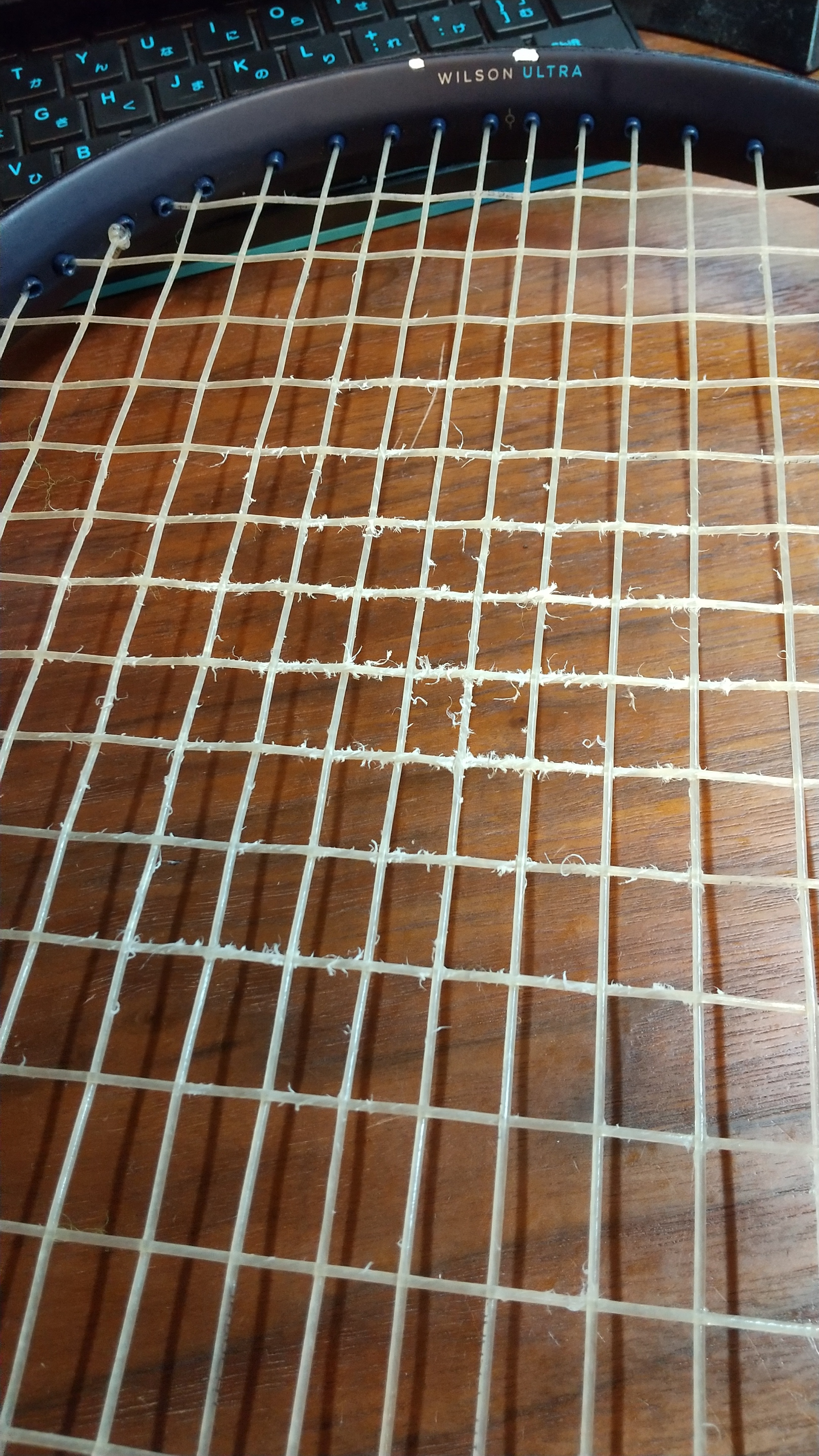 ただし、この現象は、基本的に上級者や体育会のテニス部員など、スウィングスピードの違いが大いに影響するだろう。主のようにのんびりラケットをフラットに振り回している者のガットは、あまり傷みにくいはずだ。