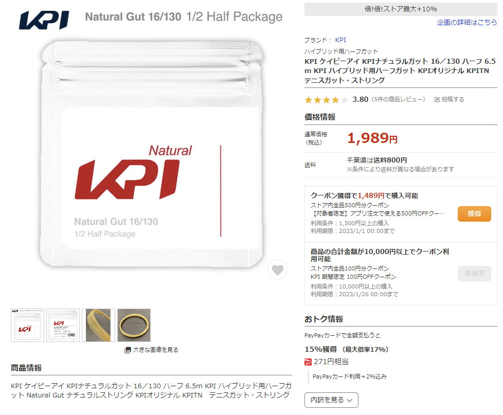 2,000円とお安いKPIのハーフナチュラルガット ナチュラルガットのお値段事情など