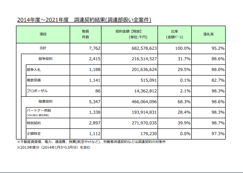 2014年度~2021年度 調達全体の状況(東京都ポータルサイトから)