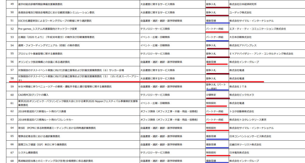 この年度のうち、オリンピック委員会が公表している具体的な調達(契約)情報を例を上げて見てみる。