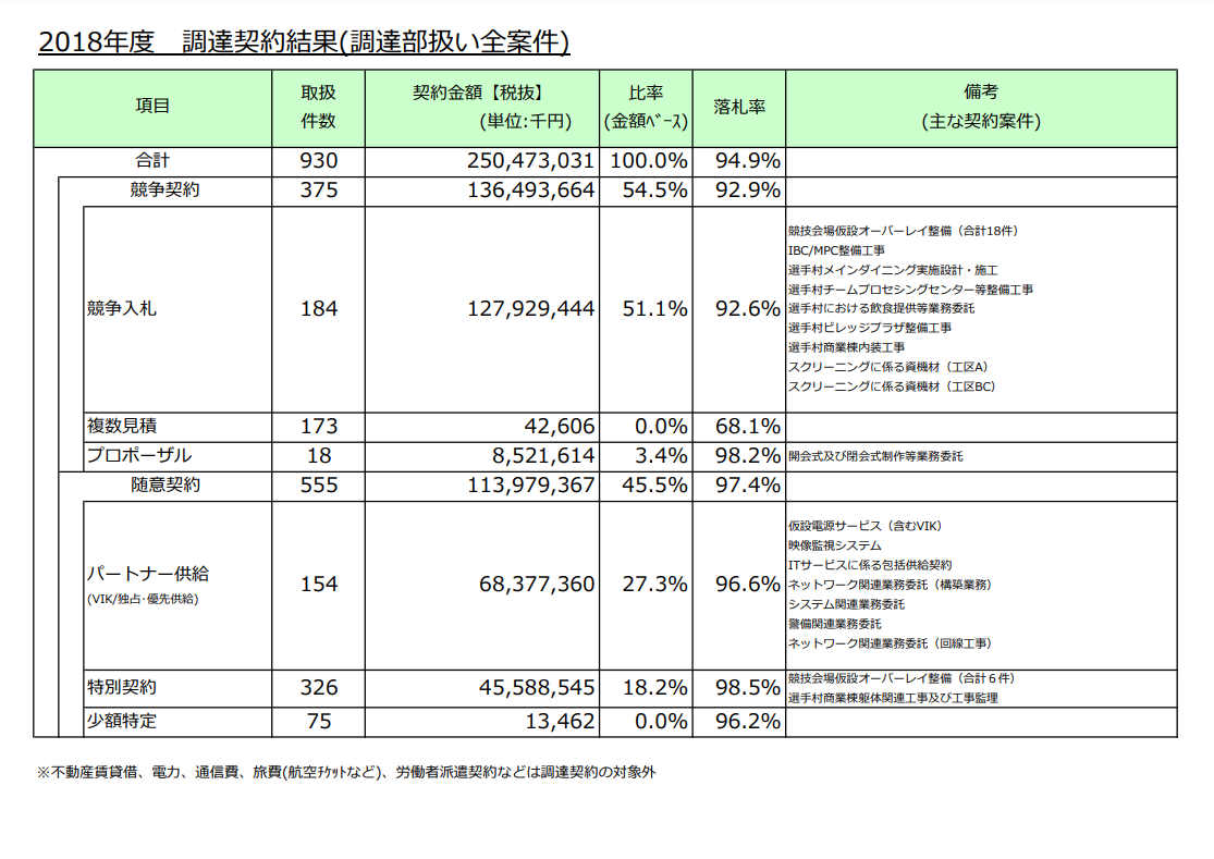 この年度のうち、オリンピック委員会が公表している具体的な調達(契約)情報を例を上げて見てみる。