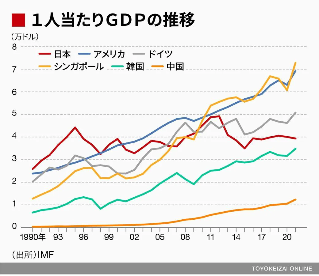 「仲良く貧乏」を選んだ日本は世界に見放される1人当たりGDPは約20年前の2位から28位へ後退