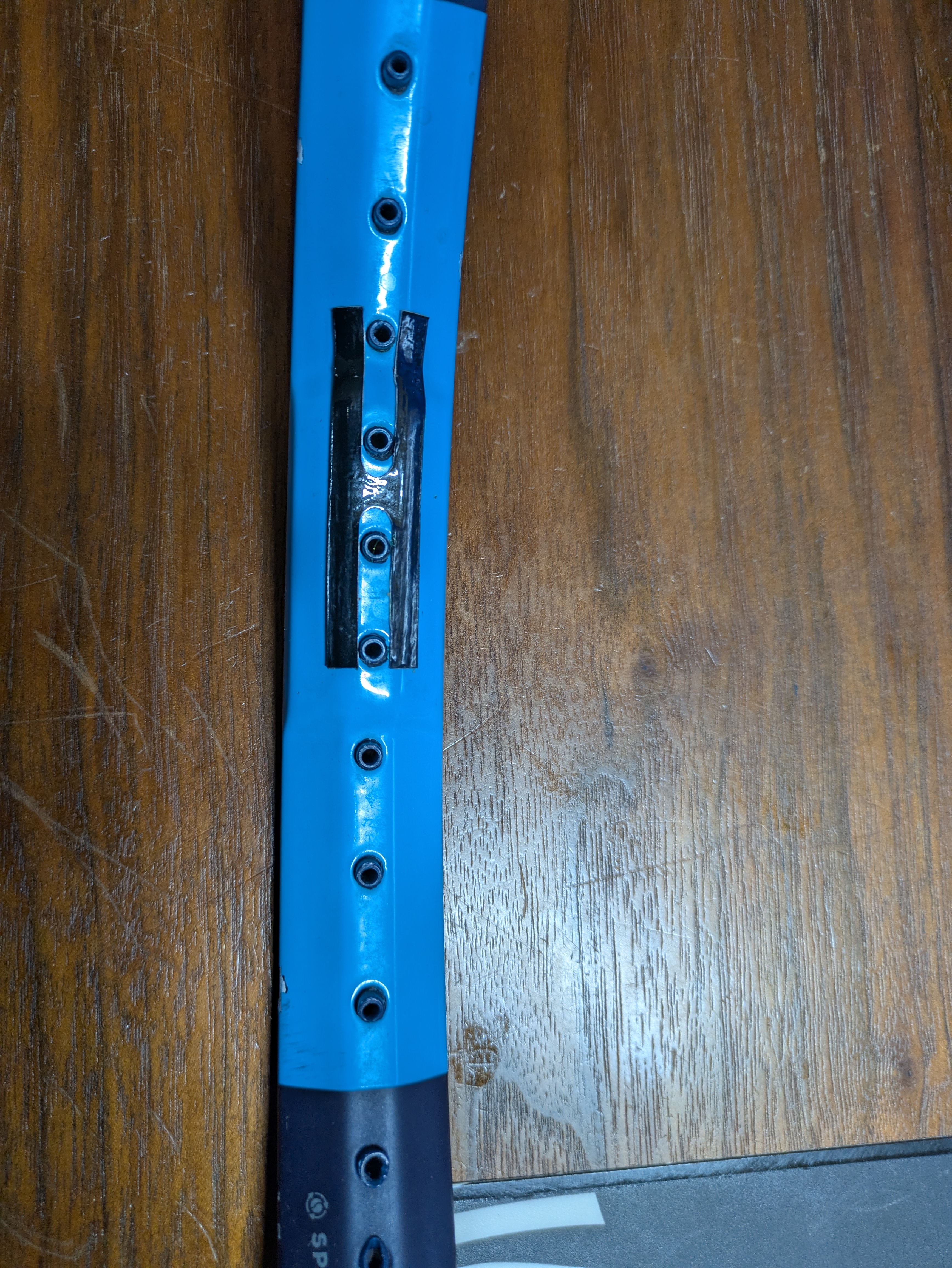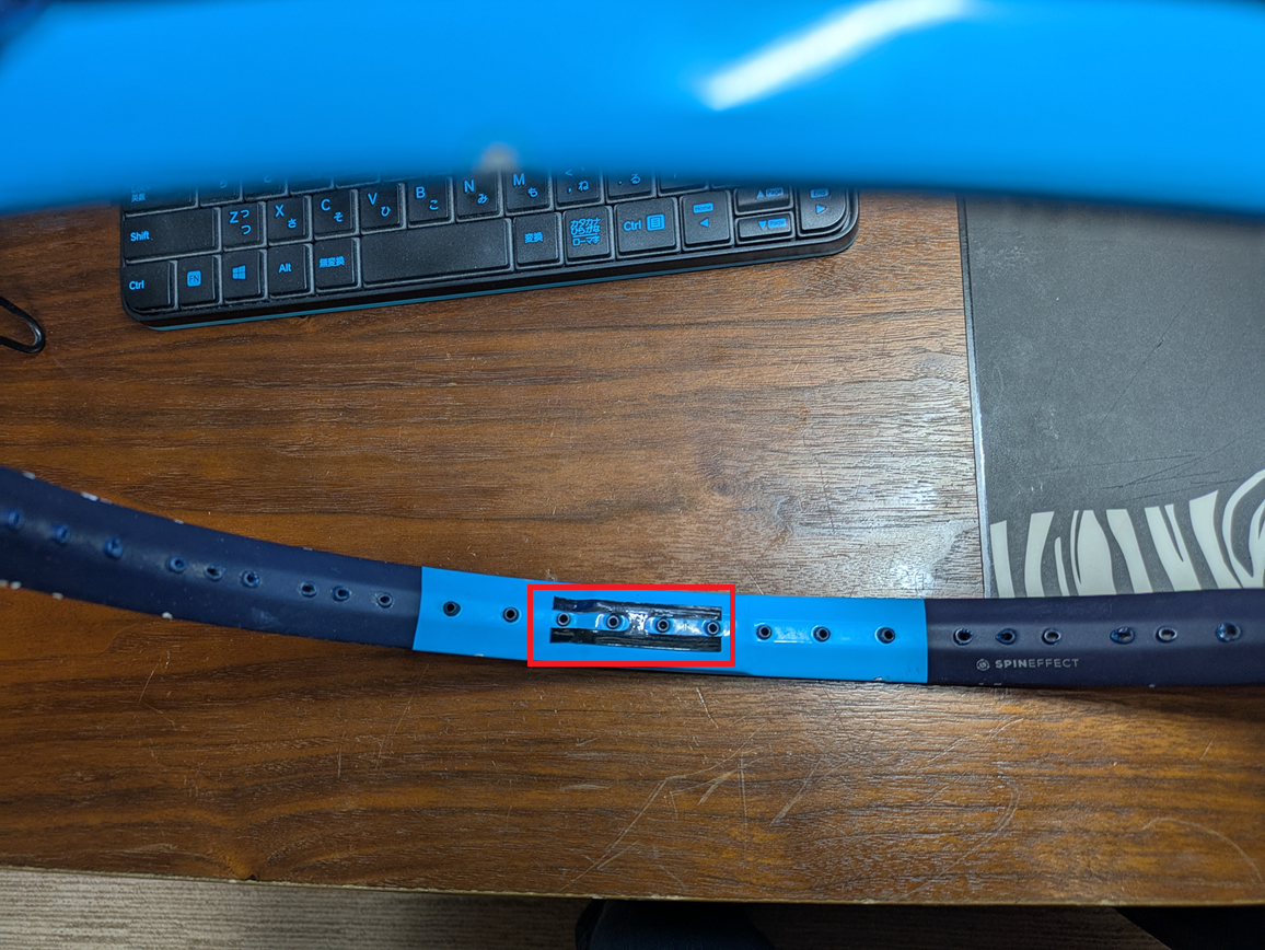 親爺は、おそらく一般的だと思われる9時と3時の方向とグリップエンドに3gの重りを3箇所、合計9gを貼った。実際に貼ろうとする人は、他の方がアップしている記事を参考にするのが良いと思う。