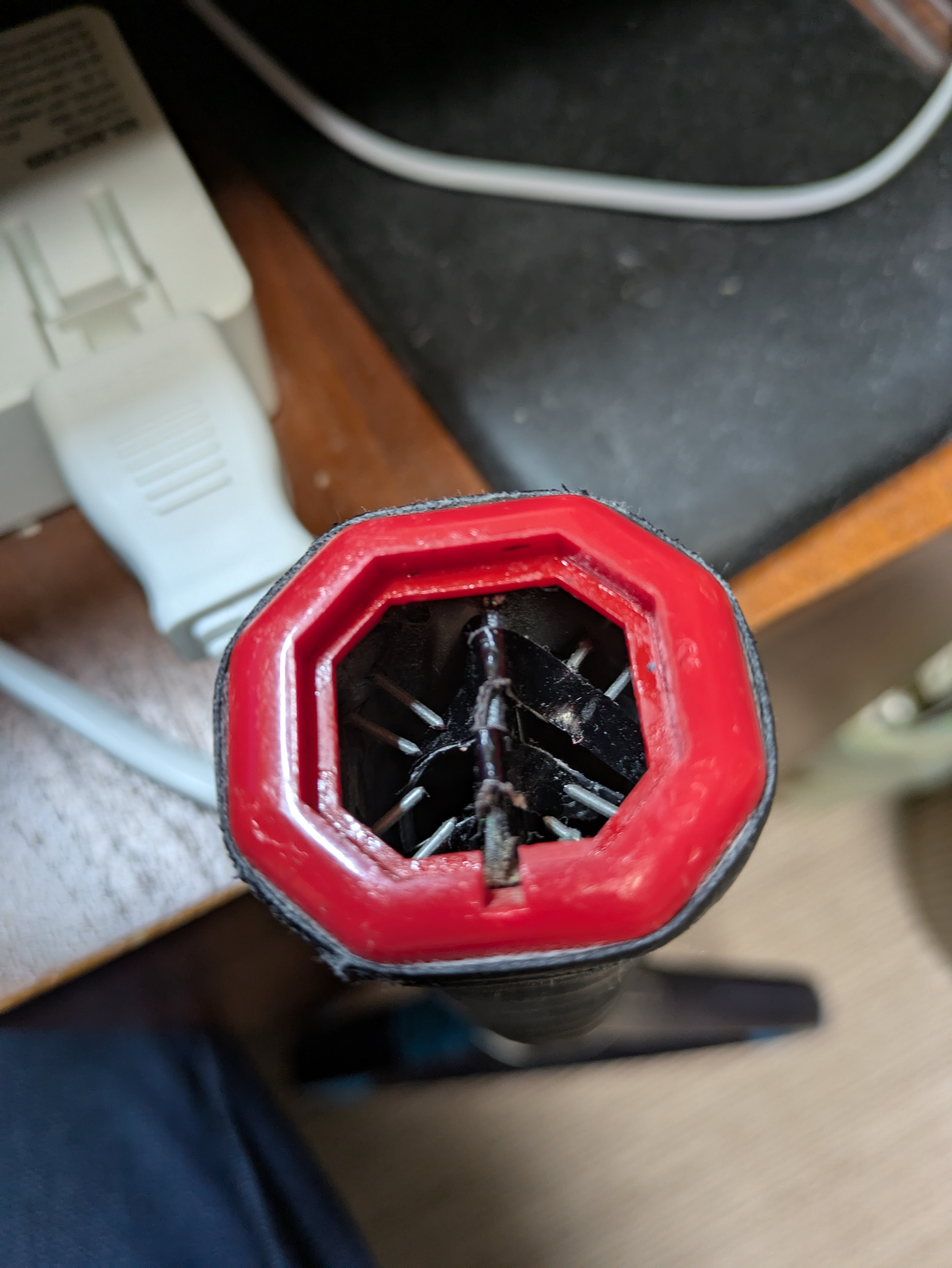 3枚目の写真は、グリップエンドにつけたウエイトを写したものである。このウエイトは、しばらく使っていると内部で千切れたようで、ラケットを振るとカラコロと音がするようになった。それで今のところ、千切れた断片を集め接着剤で固定している。内部に仕込む方法ではなく、グリップエンドのところにぐるっと貼る方法もあるようだ。