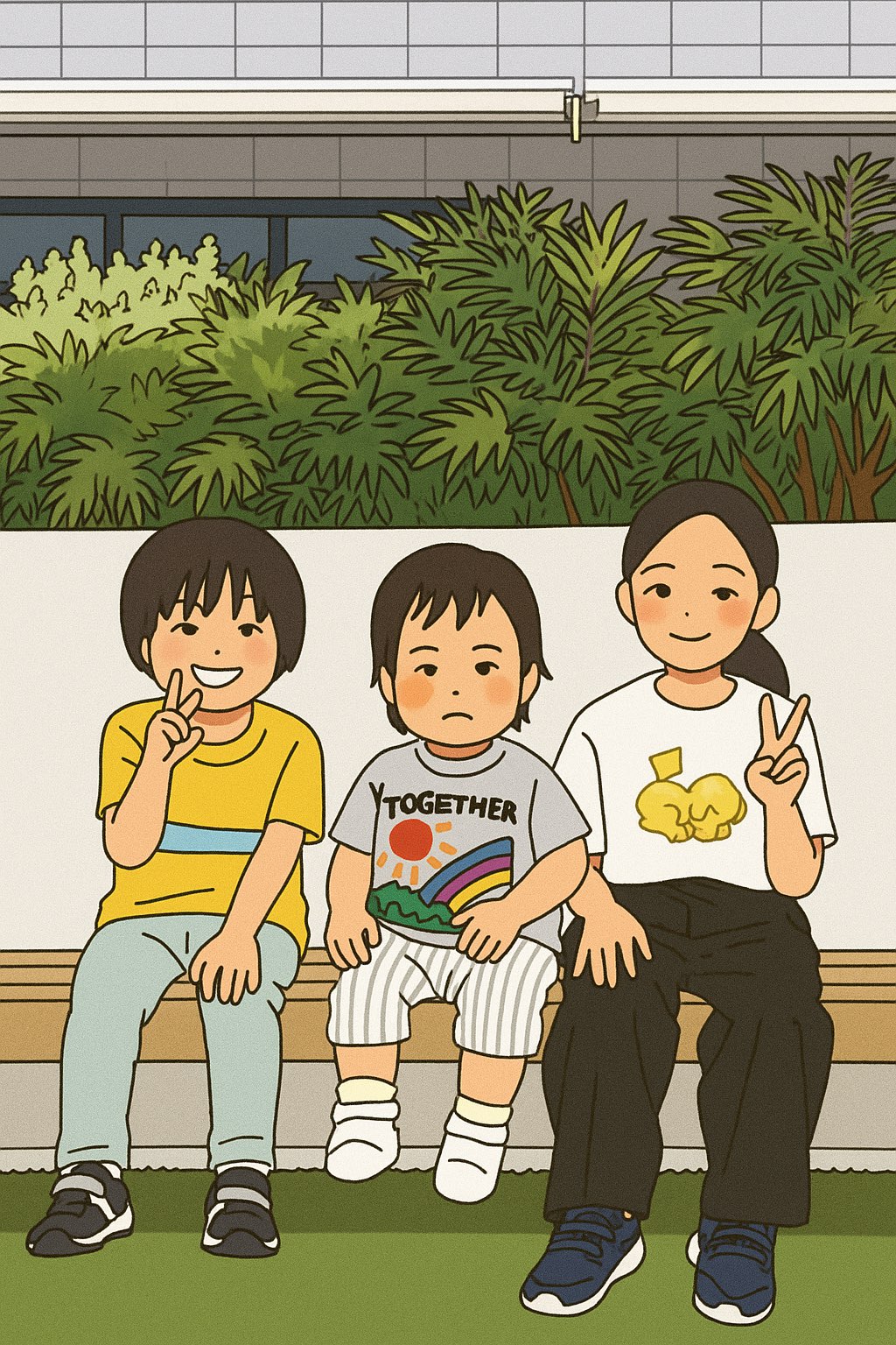 「前から知ってるわ!」という方も多いと思う。親爺は初めて知ったのだが、ChatGPTを使って写真をイラストに変換させると、すばらしいできばえで驚いた。下のイラストは3人の孫と親爺だが、写真をもとに ChatGPT(無料版)が作ったものだ。