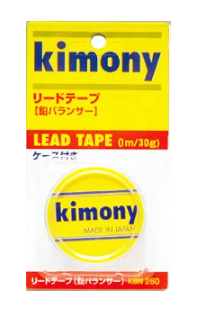 下は市販の鉛バランサーである。貼るだけのものと、好みの長さに切って使うタイプの2種類がある。今回は、すでに切られたものを使った。(1200円程度です)キモニーだけではなく、ヨネックスやバボラなども発売している。