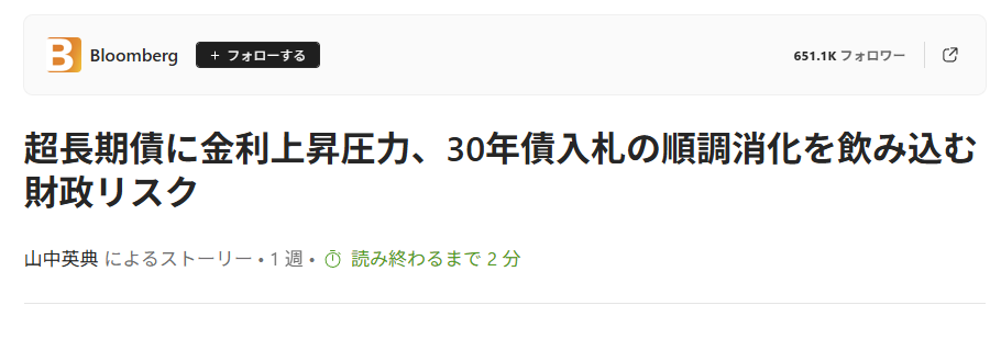 30年国債の消化が困難であるという報道は、マーケットの変化を示唆していますが、これが日本の財政悪化に起因する不可避な問題なのか、あるいは自国通貨建て・変動相場制の下で異常な量の国債発行をしない限り問題ないのか、さらに需給ギャップが存在する局面において国債発行が経済成長に寄与しうるのか、という点は多角的な検討を要します。