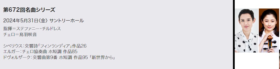 5/31のシベリウスの交響詩「フィンランディア」は、10分足らずの曲で、知っているかなと思っていたが、あっさり終わってしまう。ドボルザークの「新世界から」は耳慣れているというものの、聞き覚えがあるのは、1楽章と最終楽章で、途中は退屈である。エルガーのチェロ協奏曲は、チェロの響きが素晴らしかった。どの曲も、始まりと終楽章だけが耳に残り、クライマックスで盛り上がって観客の拍手大喝さいとなる。