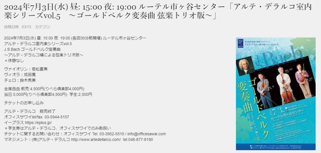- 7/3 弦楽3重奏による『ゴルトベルク変奏曲』
