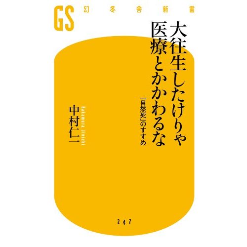 こういう風に思っていたところ、眼からウロコの本を見つけた。いずれも幻冬舎新書であるが、 ①「思い通りの死に方」中村仁一 / 久坂部羊 ②「日本人の死に時」久坂部羊 ③「大学病院のウラは墓場 医学部が患者を殺す」久坂部羊 ④「大往生したけりゃ医療とかかわるな 自然死のすすめ」中村仁一 の4冊である。まず、この4冊の著者を簡単に紹介すると、中村仁一さんは、1940年生まれ京都大学医学部卒業、病院の院長を経て老人ホームの診療所長をされている。久坂部羊さんは、1955年生まれ大阪大学医学部卒業、読んでいるとパプアニューギニア大使館で医務官の経験があり、主はこの国の赴任中に、もちろん別の医務官だが、診察を受けたことがあり、世間は狭いなあと思う。この10年ほどは老人医療に携わる傍ら、ベストセラー「破裂」などの小説も書かれている。
