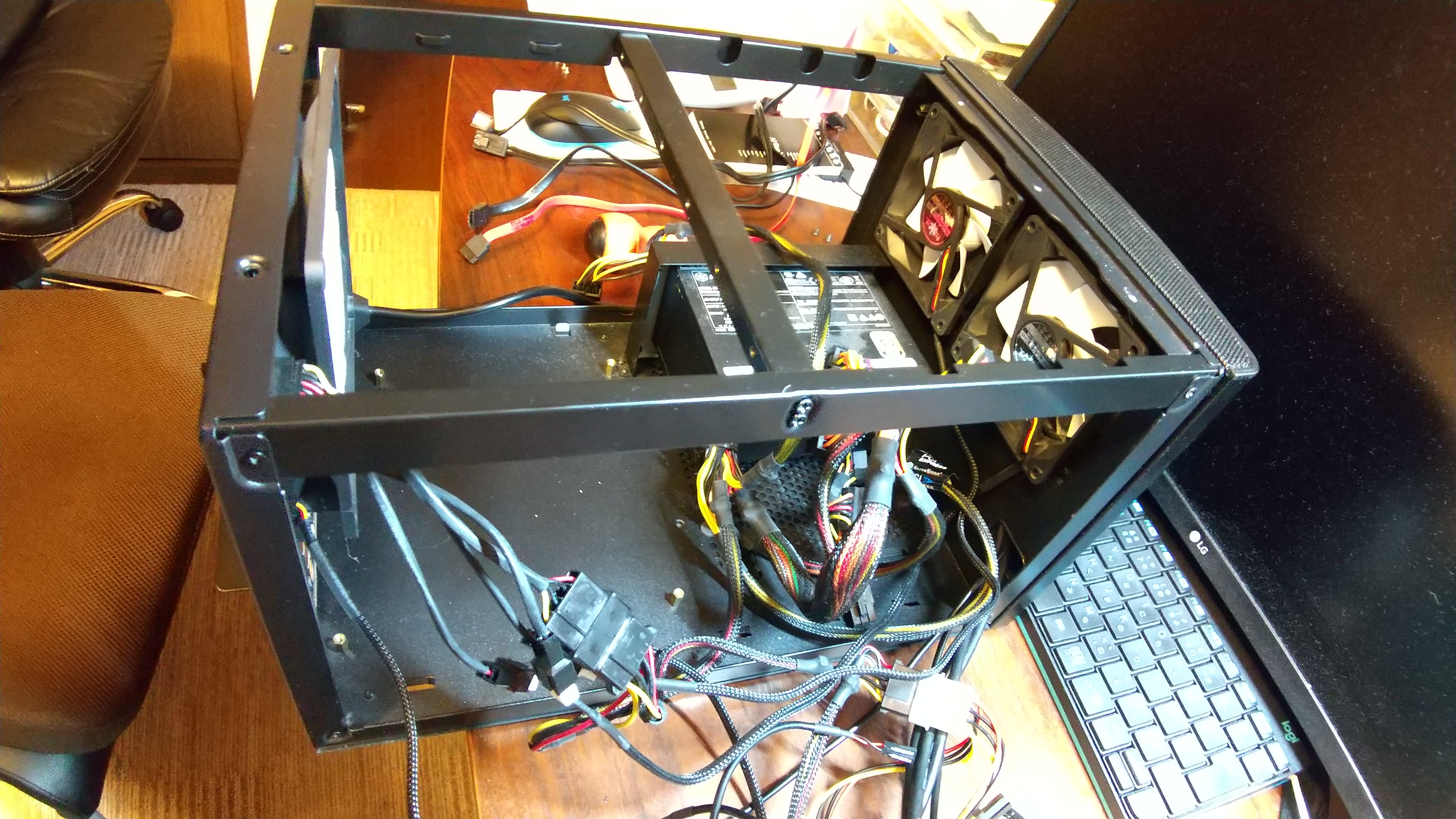 上が、ケース Fractal Design Node 304 から古いマザーボードを外したことろ。ケースは、けっこう古い製品なのだが、メルカリで最近購入したものだ。電源はSFXで300Wだったので、使っていなかったATX 550Wのものに交換した。