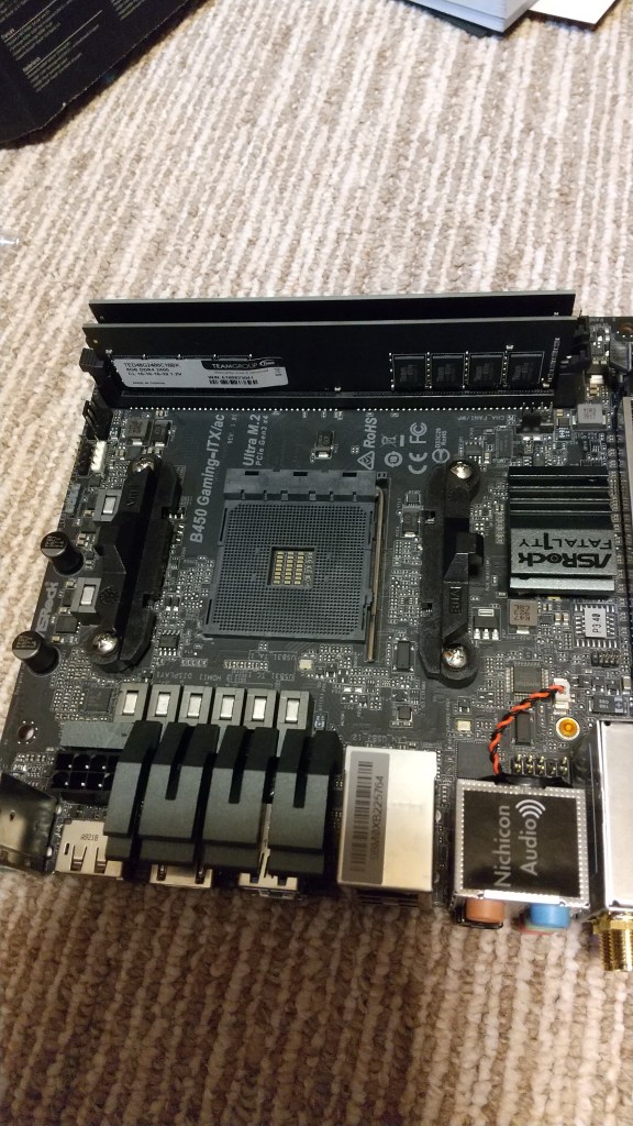 上が、古いマザーボードと、左側にあるのがメモリーDDR4 2400 と SSD 250GB M.2 Type2280 である。こちらは新しいPCへそのまま流用する。なお、SSD 250GB M.2 Type2280 の方は、これまで Cドライブとして使っていたもので、あわよくば新しいPCでそのまま移行できるか試してみようと思った。だめなら、クリーンインストールしてWindowsの再認証、アプリケーションは入れなおすつもりだ。