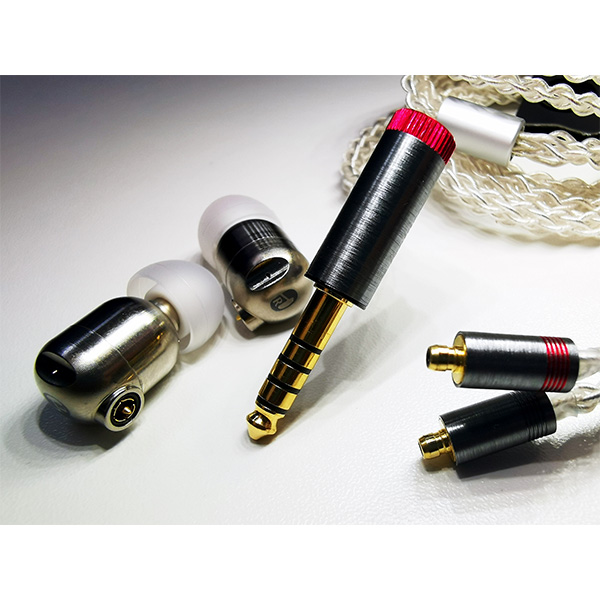 こちら、カナル型イヤホンIER-M7である。この製品は、バランス接続用とアンバランス接続用のケーブルが同梱されている。従来のアンバランス接続のイヤホンは1本の線を共用し、3本で構成される。ところが、バランス接続では高音化をはかるために、左右それぞれ独立させ、4本使っている。