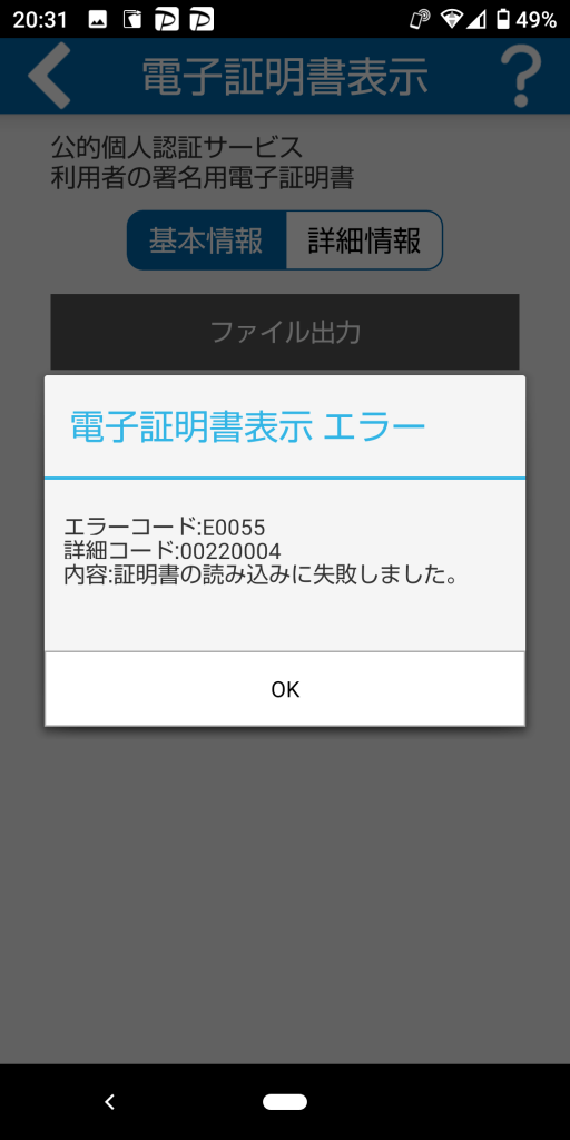 ただ、主がスマホでエラーが起こった原因は特定できなかった。市役所では、主のマイナンバーカードでエラーが何も起こらなかったからだ。下がエラーメッセージである。
