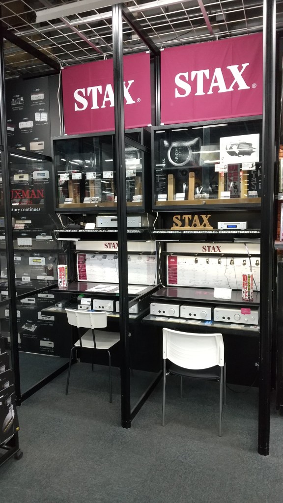 次は、線路の反対側にあるヨドバシカメラで試聴したスタックスという会社のヘッドホンである。ご覧の通りけっこう変わった形をしている。駆動方式が他のヘッドホンが違うのだが、音もまったく違う。びっくりするほど美しくて奇麗な音だ。ただ、このヘッドホンは、下の写真のドライバーという部品が別に必要だ。このため、二つ買うと結構な値段になる。この二つの製品の組み合わせが、先に書いた雑誌では高評価を得ていた。 しかし、この製品にはほかにも、10万円以下から、70万円くらいまでのラインナップがある。主は、ラインナップの中から、安いタイプのものをお金を貯めて買いたいと思っている次第である。もちろん、値段が高ければ音が良いのだが、安いものでも十分に良い音だ。