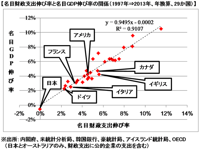 「ここまで読んできた読者には一つの疑問が浮かんだことと思う。政府は無制限に減税を行って支出を増やし、経済に刺激を与え続けることができるのか、という疑問だ。・・・・政府支出が税収を上回った場合、差額は借金で埋め合わせるほかない。政府はそのために国債を発行する。国債は国家の借用証書である。・・・とはいえ、国家の財政と家計は同じではない。まず、政府は死なない(ここの政権は死亡宣告をされるかもしれないが)。だから、借金をどんどん先送りすることが可能だ。・・・・加えて、経済効果に期待することができる。たとえば、政府が新しい高速道路を建設するとしよう。総工事費は10億ポンドだが、最終的に20億ポンドの経済効果が期待できるとする。政府はこの費用を国債で賄う。そして償還期日が到来したときには、経済は拡大して税収は増えている。つまり高速道路の建設自体が必要な費用を生み出すわけだ。このケースでは、債務の総額が増えても、経済規模に対する債務の比率は下がっている。 また、経済自体の規模も長期的には拡大していくので、経済規模すなわちGDPに対する債務の比率は自然に低下する。・・・・じつのところ、政府が債務を返済しようと大幅増税をしたり支出を大幅削減したりすれば、経済成長に急ブレーキがかかるので、財政健全化の試み自体自殺行為となる恐れがある。経済成長がゼロになってしまったら、政府債務ははるかに大きな負担となってのしかかってくるだろう。」