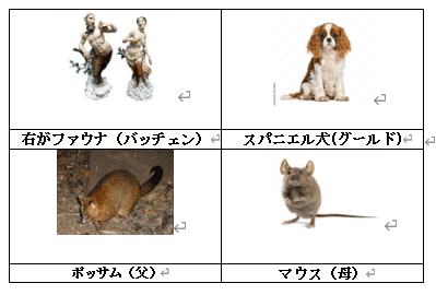 一方、父は、すぐに死んだふりをして臆病者という意味のフクロネズミの《ポッサム》、母は平凡にネズミの《マウス》だった。